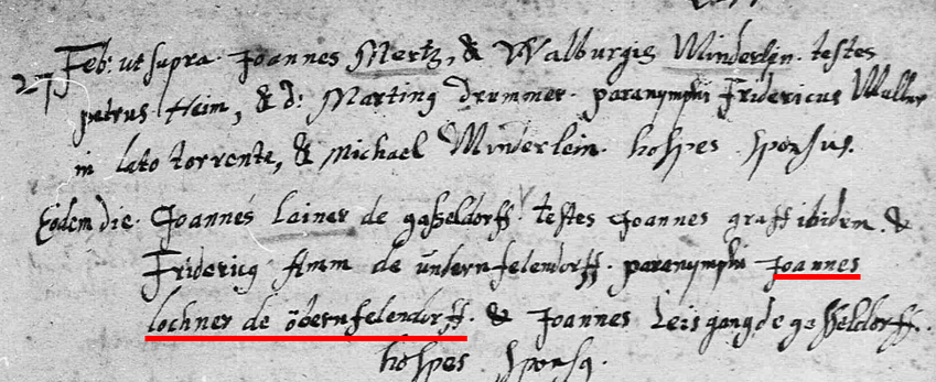 siehe oben: Johannes Lainer aus Gasseldorf Trauzeuge, so wie Johannes Graff aus Gasseldorf und Friedrich Amm aus Niederfellendorf.